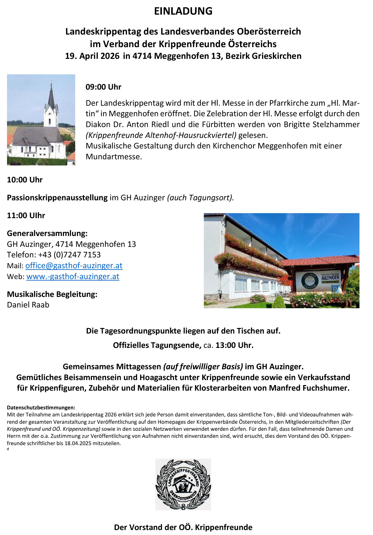 Erstmals wird in der Pfarrkirche St. Martin im Mühlkreis – dank der Organisation unseres Mitglieds Erwin Lanzersdorfer – eine Passionskrippe unseres Krippenvereins „d’Mühlviertler Krippler“ präsentiert.