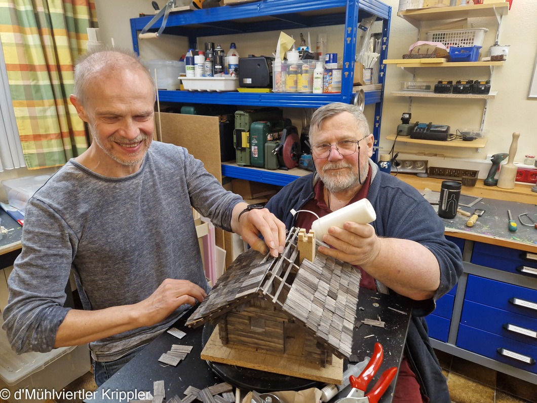 Herbert baut im Krippenbaukurs, der seit Oktober in unserer Krippenwerkstätte in der Lichtenberger Straße stattfindet, zwei Mal pro Woche an seiner Krippe. Er arbeitete an seinem Werk voller kreativer Ideen, mit viel Liebe und setzte seine Vorstellungen sehr gut um. Jetzt fehlen nur noch ein paar Handgriffe und die Krippe kann von der Heiligen Familie und weiteren Figuren bezogen werden. Die d`Mühlviertler Krippler wünschen dem neuen Mitglied und seiner Familie mit seinem Werk viel Freude und ein frohes Weihnachtsfest.