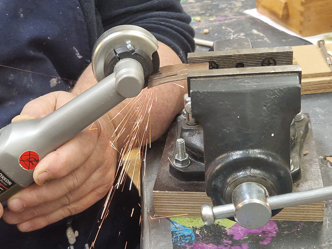 Michael stellt eine Tür für die Krippe her